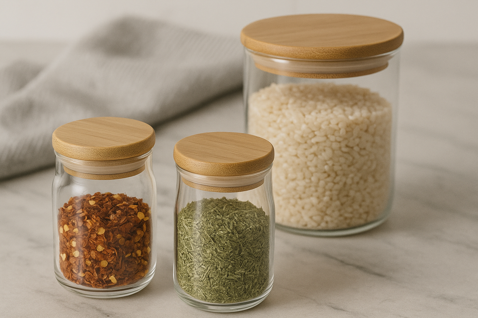 BAMBU KAŞIKLI YUVARLAK CAM BAHARATLIK