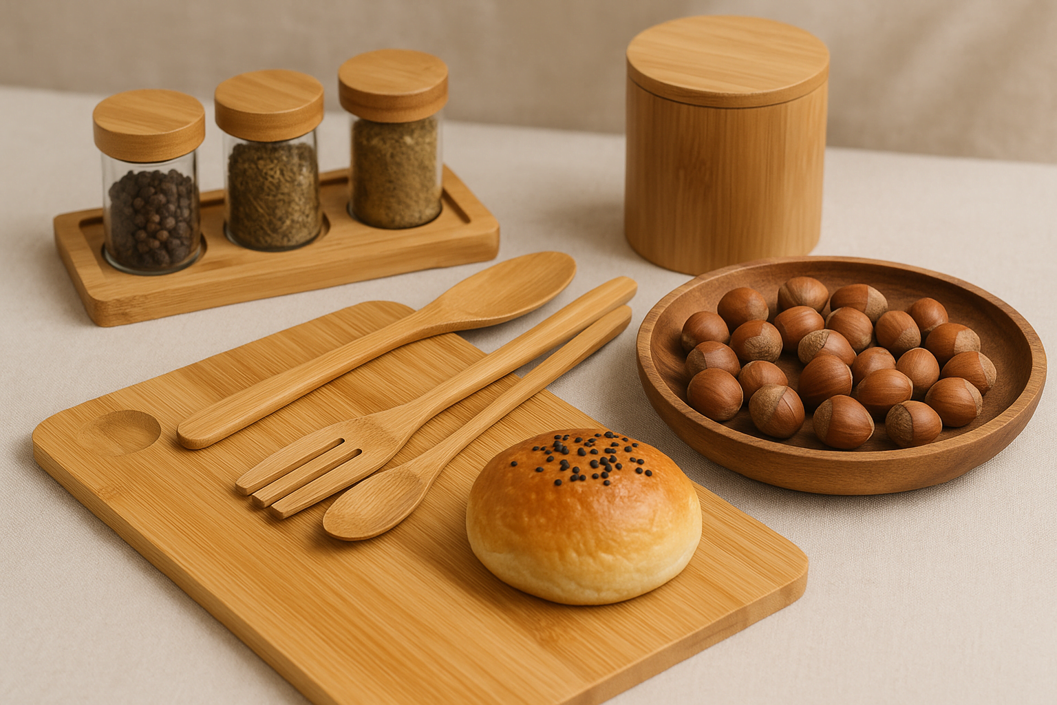 MİEN BAMBU KAPAKLI CAM BAHARATLIK SETİ