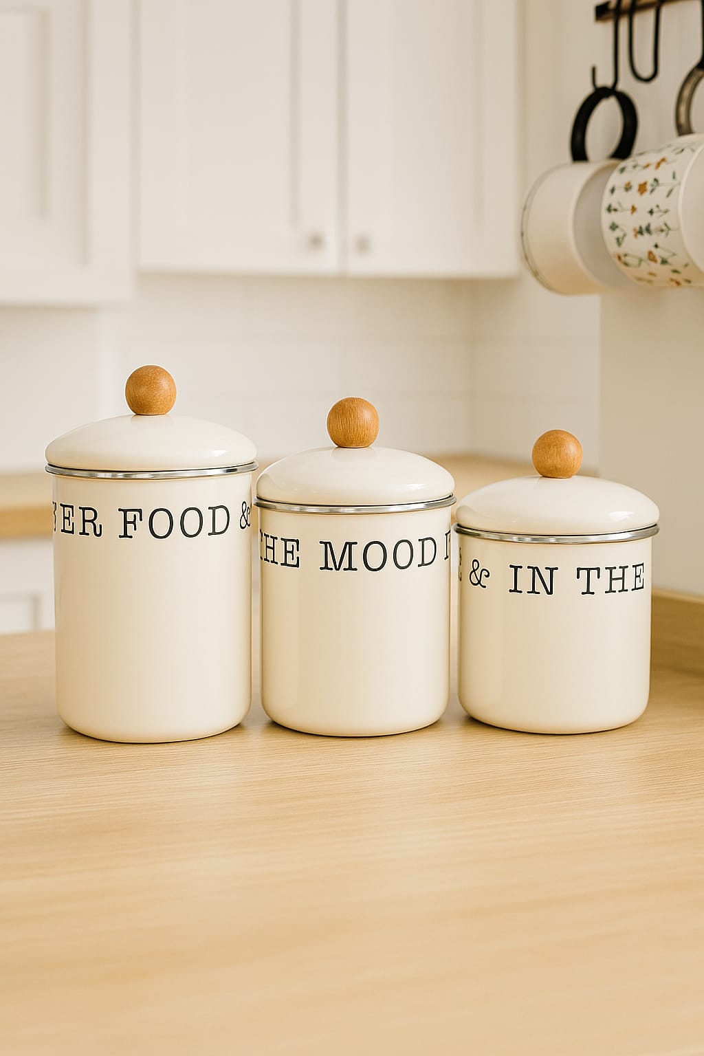 Mien 3'lü Emaye Kavanoz Takımı, klasik emaye kaplaması ve kompakt tasarımıyla hem estetik hem de fonksiyonel bir çözüm sunar. Baharatlarınızı taze ve düzenli tutar. Ayrıca mutfak dekorunuza da zarif bir dokunuş katar.