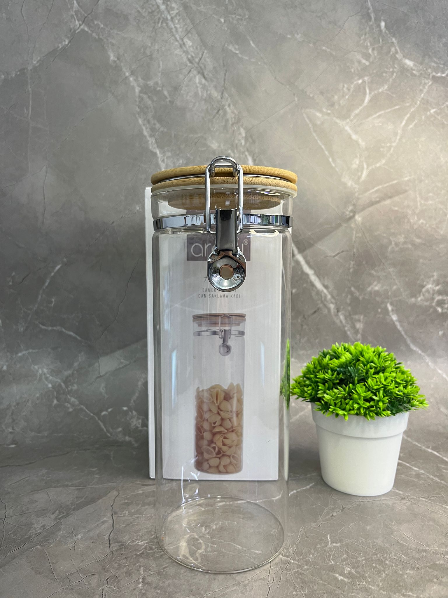 AROW KELEPÇELİ BAMBU KAPAKLI ERZAK KAVANOZU