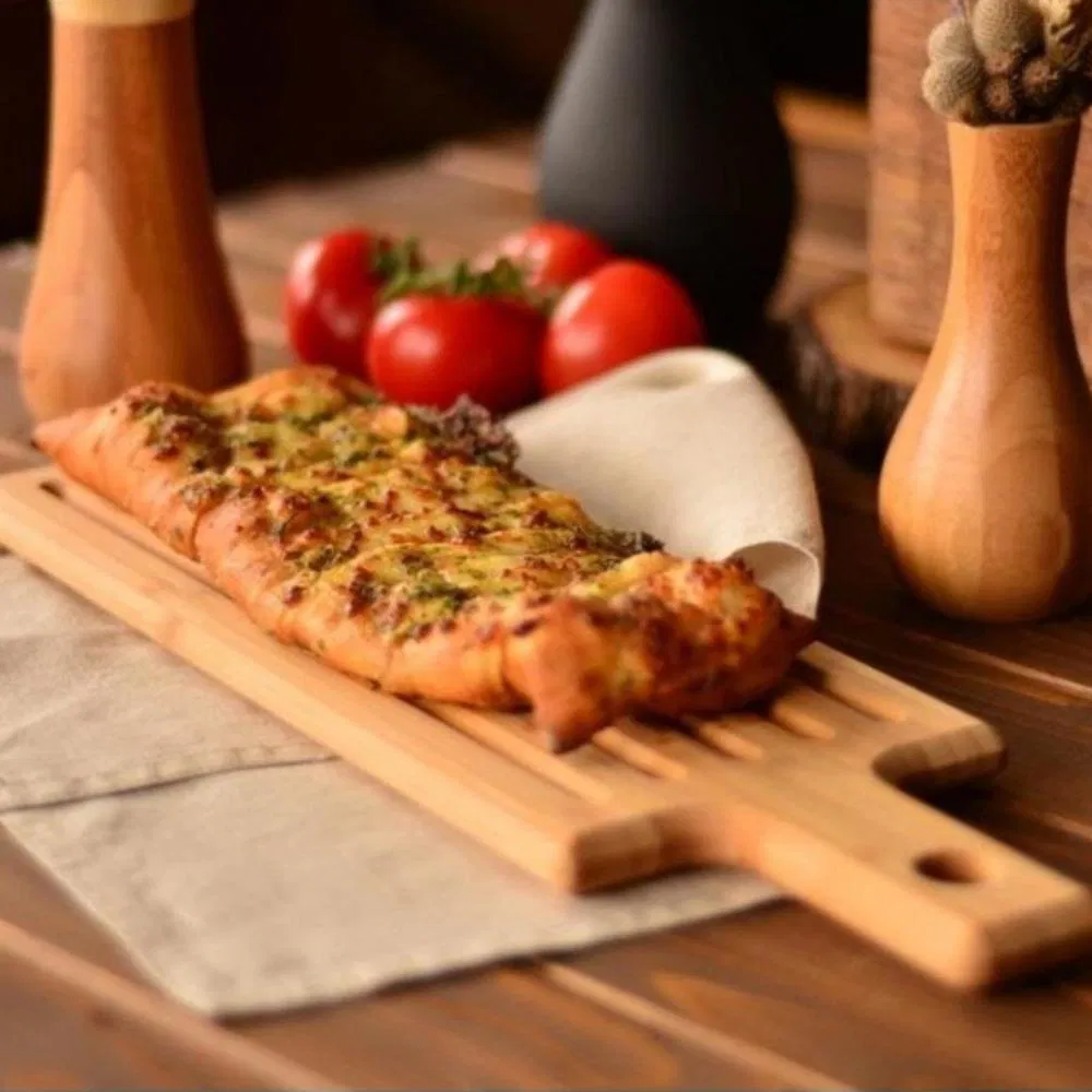 • Dayanıklı bambu malzemeden üretilmiş olan bu tahta, özellikle ızgara veya mangal sonrası sunumlar için idealdir.